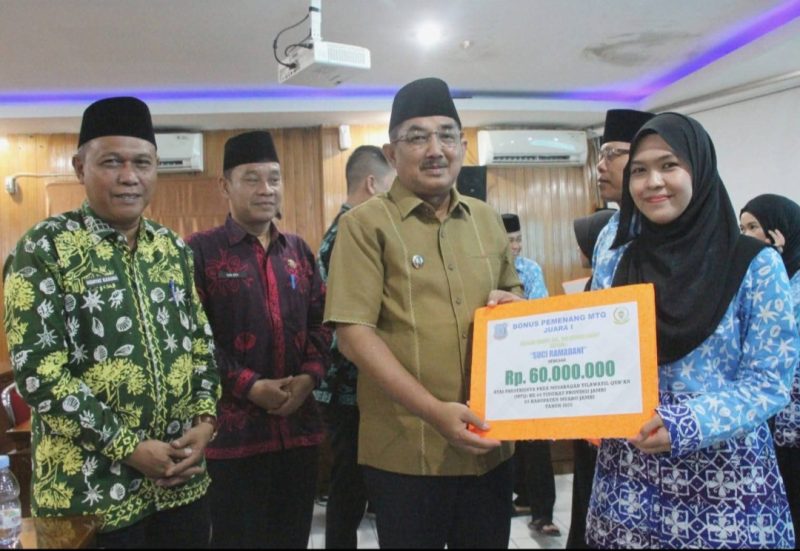 Kabarina.com – Bupati Tanjung Jabung Barat, Drs. H. Anwar Sadat, M.Ag., menyerahkan bonus kepada para qori dan qoriah berprestasi yang tergabung dalam Kafilah Kabupaten Tanjung Jabung Barat pada ajang Musabaqah Tilawatil Qur’an (MTQ) ke-54 Tingkat Provinsi Jambi Tahun 2025.