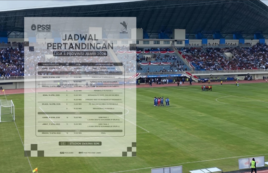 Kabarina.com – Atmosfer sepak bola di Provinsi Jambi kembali memanas. Kompetisi bergengsi tingkat daerah, Liga 4 Provinsi Jambi 2026, dipastikan resmi bergulir mulai 10 April 2026 di Stadion Swarna Bumi. Turnamen ini bukan sekadar ajang kompetisi, tetapi menjadi panggung pembuktian bagi klub-klub terbaik Jambi dalam mengincar satu tiket menuju pentas nasional.