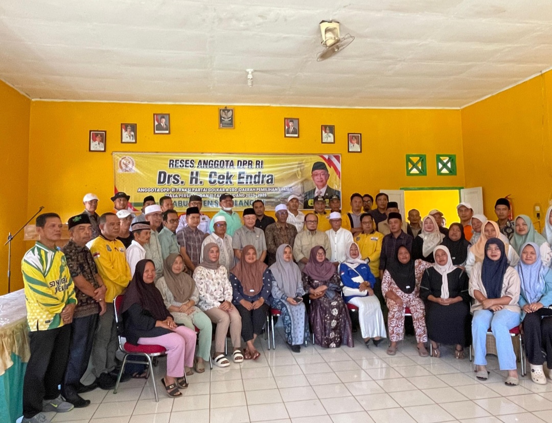 Kabarina.com – Anggota DPR RI Fraksi Partai Golkar, Cek Endra, melaksanakan kegiatan reses di Kecamatan Bathin VIII yang dipusatkan di Kantor Camat Bathin VIII. Kegiatan tersebut dihadiri para kepala desa, tokoh adat, tokoh agama, pemuda, serta elemen masyarakat yang antusias mengikuti dialog terbuka bersama wakil rakyat di Senayan itu.