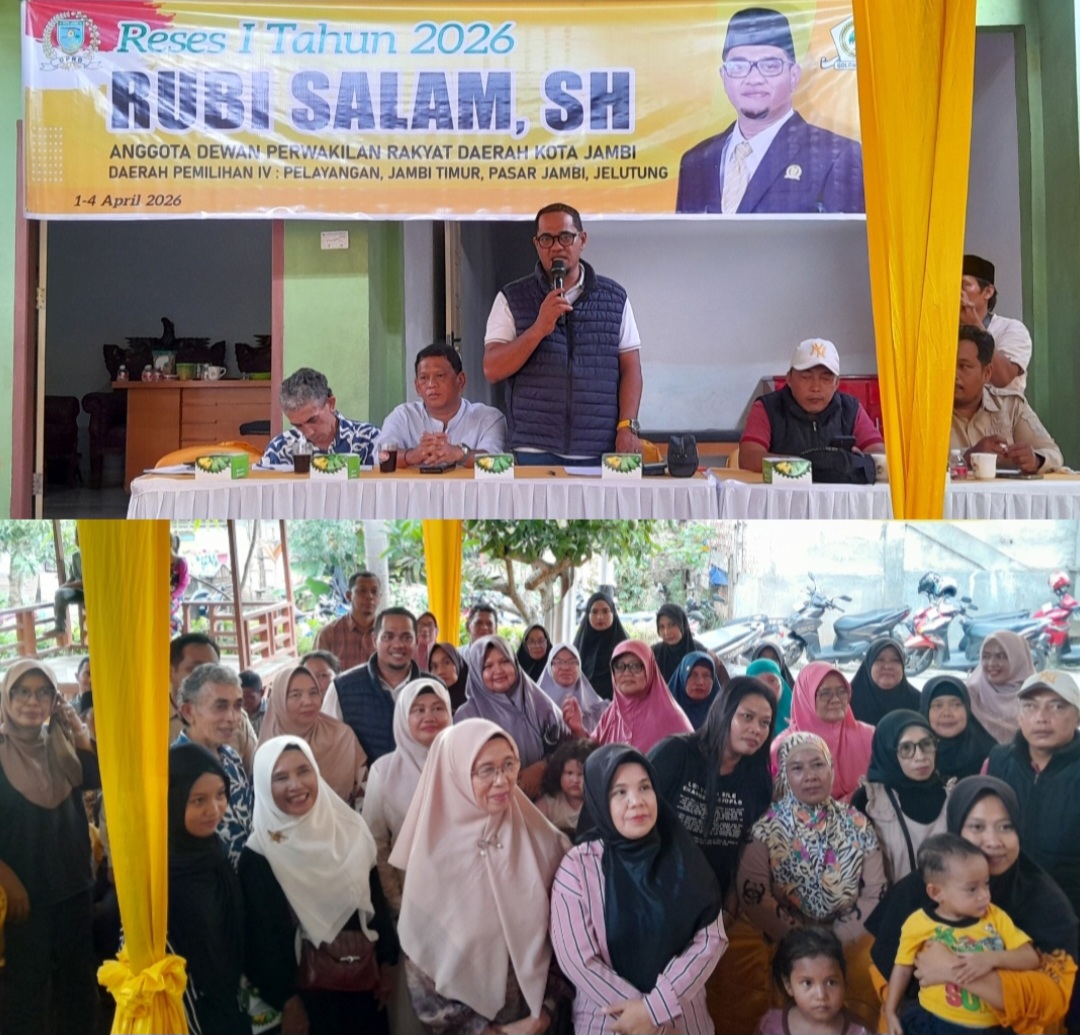 Kabarina.com – Kegiatan Reses I Anggota DPRD Kota Jambi Fraksi Partai Golkar, Rubi Salam, SH, berlangsung sukses dan penuh antusiasme masyarakat. Reses yang digelar di halaman kediaman Ketua RT 59, Kelurahan Jelutung, Kecamatan Jelutung, Kota Jambi, Jumat (03/04/2026), menjadi wadah strategis bagi warga untuk menyampaikan aspirasi secara langsung kepada wakil rakyat.