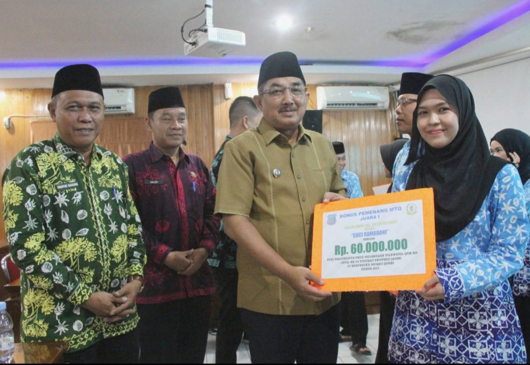 Bupati Tanjab Barat Anwar Sadat Beri Bonus Qori–Qoriah Berprestasi di MTQ Provinsi Jambi