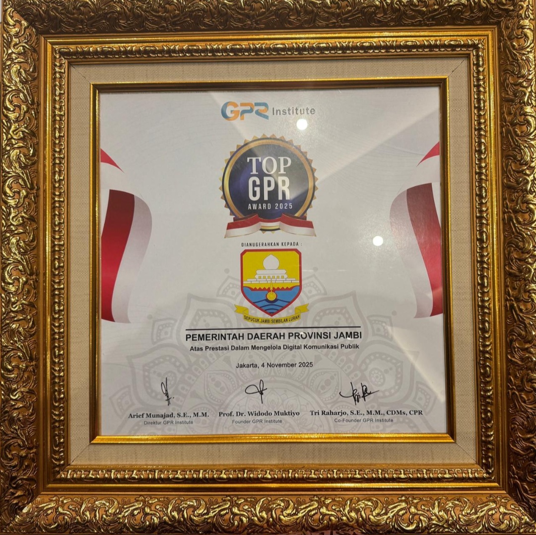 Pemprov Jambi Raih TOP GPR Award 2025, Satu-satunya di Indonesia