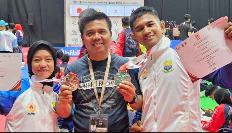 Kabarina.com – Dua atlet tarung derajat asal Jambi berhasil menambah koleksi medali kontingen Jambi pada ajang PON Bela Diri 2025 di Kudus, Jawa Tengah. Gilang Despriyanto meraih medali perak di kelas 75,1–80 kg putra, sementara Rahma Tia menyumbang perunggu di kelas 45–50 kg putri. Pertandingan berlangsung di GOR Djarum, Kaliputu, Kudus.